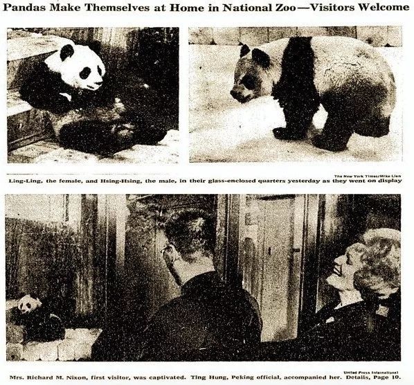 同一年,时任美国总统理查德·尼克松访华,中美建交。之后,中国便送了一对名为玲玲和兴兴的熊猫给美国,这成为当年《纽约时报》的头版新闻,并引起一场激烈的争论,讨论它们到底应该住在什么地方。