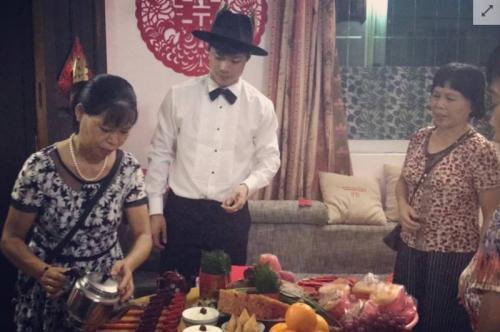 新人按照中山当地传统习俗给父母斟茶、拜神,十分完满喜乐!这势头真是让人直呼太过瘾。