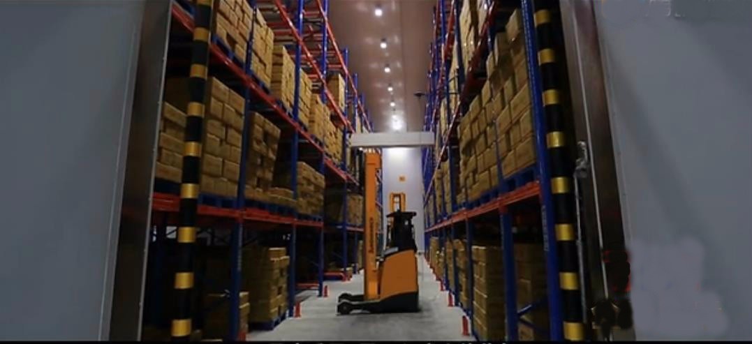 大连城市物流共同配送中心无疑是一个真正意义的现代化冷链物流服务中心。该中心常温仓储面积3.3万平方米,库外双侧均设计有月台;低温层仓储面积1.5万平方米。仓储主库区为-18至-25度,采用5层压入式立体货架,在穿堂上方的夹层都分,还分别设有多间冷藏库、气调库,水果催熟库;超低温库面积5500平方米,主库区-55度。