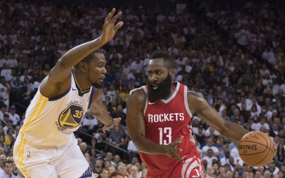 [篮球世界]哈登27+10杜兰特绝杀无效 火箭1分险胜勇士