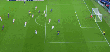 64分钟梅西禁区右侧底线突破横敲,迪涅远点左脚低射远角破门。3-0,巴萨锁定胜局,梅西传射!