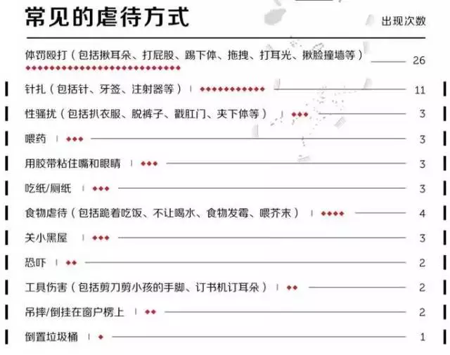 “虐童”这个词重回公众视野,其实并不意外。近年来,虐童事件频发。据数据调查显示,儿童受虐的方式触目惊心。
