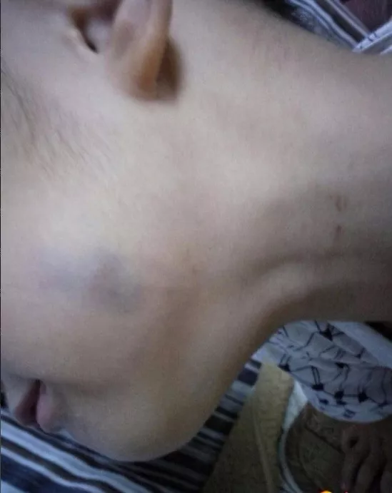 康康(化名)今年5岁,在合浦县廉州镇小红帽幼儿园读大班。9月28日晚,康康脸上的一块瘀伤引起了妈妈陈女士的注意,“左脸颊下方又黑又肿。”