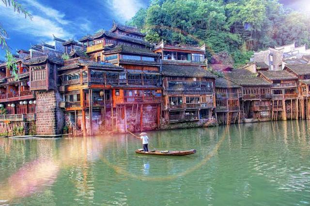 7、凤凰古城(凤凰古城城区内有近千家商铺和数千居民,游客可以自由逛古城,若要进入景点内参观,景点不单独售票,九景票价为148元/人),凤凰古城是国家历史文化名城,曾被新西兰著名作家路易艾黎称赞为中国最美丽的小城。这里与吉首的德夯苗寨,永顺的猛洞河,贵州的梵净山相毗邻,是怀化、吉首、贵州铜仁三地之间的必经之路。作为一座国家历史文化名城,凤凰的风景将自然的、人文的特质有机融合到一处,透视后的沉重感也许正是其吸引八方游人的魅力之精髓。这座曾被新西兰作家路易艾黎称作中国最美丽的小城之一的“凤凰古城”建于清康熙时,这颗“湘西明珠”是名副其实的“小”,小到城内仅有一条像样的东西大街,可它却是一条绿色长廊。此景点离张家界车程为4.5个小时左右,一般游玩一到二天时间即可。