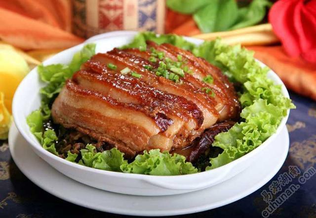 第六碗:土家扣肉(原料:五花肉、豆豉)肥而不腻,具有滋补强肝、健脾宽中、润噪利水等功效。