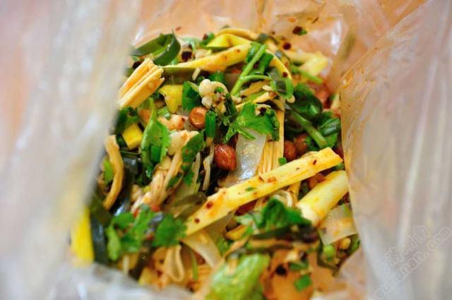 张家界凉面算的上是一道独特的风景,走在大街小巷,随处都可见卖凉面小吃摊。卖的人简单,一个小小的两轮车就解决了店面的问题。吃的人形态各异,或坐、货站、或蹲、或边走边吃,吃凉面的人也不分男女老少,季节不分春夏秋冬。