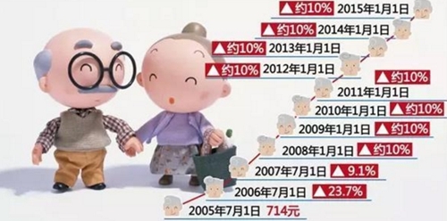 从2005年至2017年,养老金已经实现“13连涨”,全国企业退休人员月人均基本养老金也从2012年的1686元提高到2016年的2362元,增长了676元,年均增长8.8%。