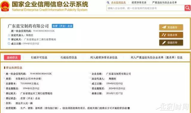 不过,事实上,奥贝泰克早在1994年就进入了中国。当年,奥贝泰克发酵有限公司就在中国成立了一家合资企业——广东蓝宝制药有限公司。其中,外方股东加拿大奥贝泰克发酵有限公司、瑞士生物工程远东有限公司分别占股42.5%、15%;中方股东丽珠集团新北江制药股份有限公司、丽珠医药集团股份有限公司、中国医药工业研究总院共占股42.5%。