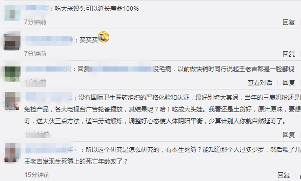 不少网友也纷纷在王老吉官方微博下留言,“信广告,可延长百分百的寿命,只是要献出脑子”。还有人质疑,“10%是怎么算出来的?中国那么多保健品都没敢那么说,最后居然输给了一个卖饮料的”。(来源北青网)
