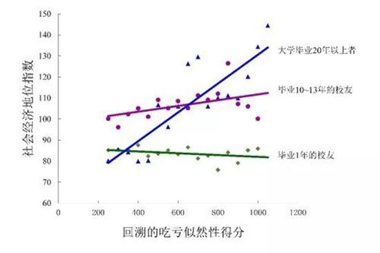 即回溯的过去吃亏似然性得分对将来社会经济地位指数的预测作用表现出时间滞后性和累积效应,但这一效应并未在吃亏似然性和精神获益之间出现。
