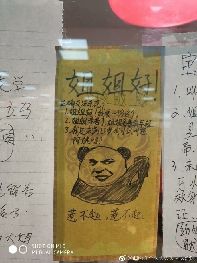 90后食堂小姐姐被叫“阿姨” 贴告示霸气回复