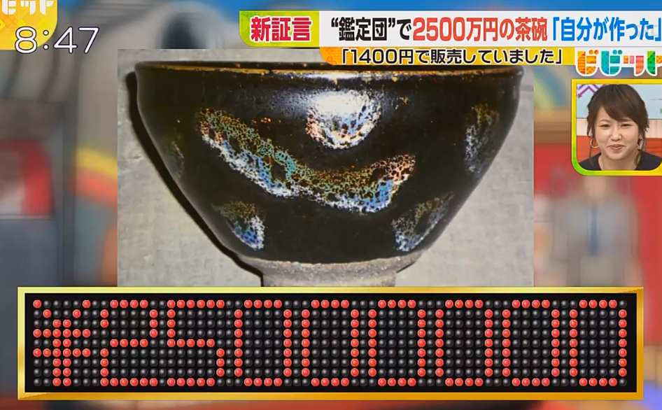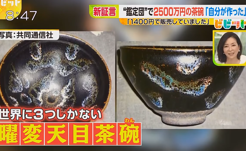 不过事隔一年后,日前另一个节目《bibitto》播出的内容中指出,这个茶碗根本不是国宝级宝物,而是一名大陆的陶艺师仿制而成。