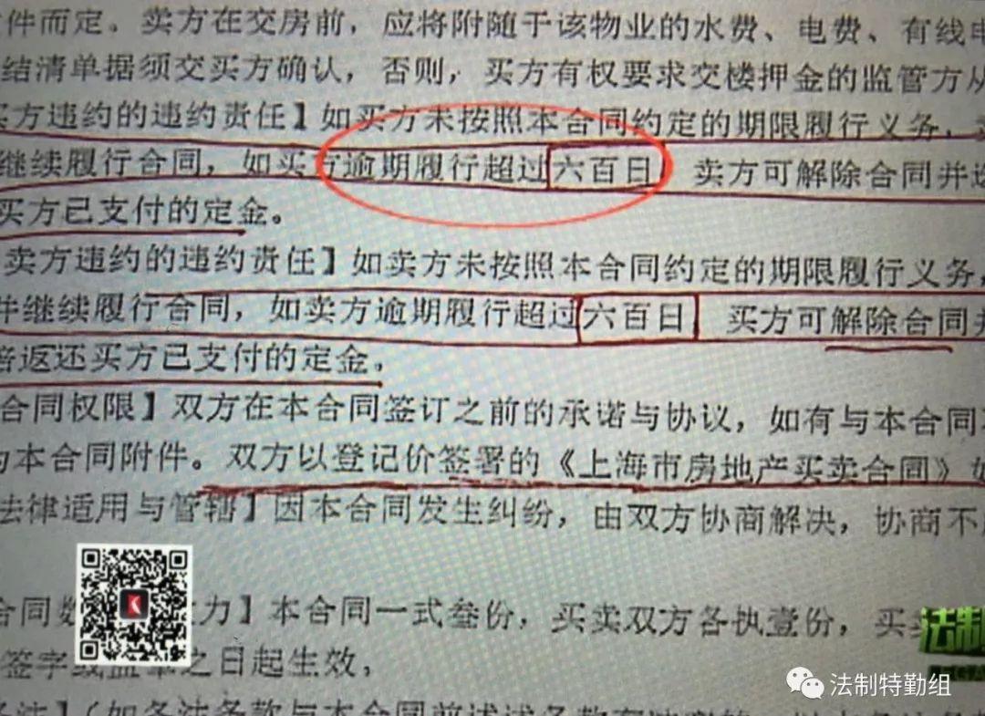 郑阿姨直到这时才发现,自己签的合同中的违约栏夹着半句话--如买房方违约逾期六百日,卖方可解除合同。