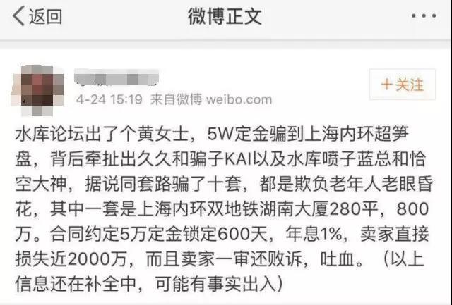 这也正是2017年4月下旬,在不少论坛、微信群和微博等各种平台持续发酵热议的水库论坛"设局谋房"事件。当时,微信公众号"魔都房房房"首次披露此事后,引起上海房产圈以及房产律师的关注。