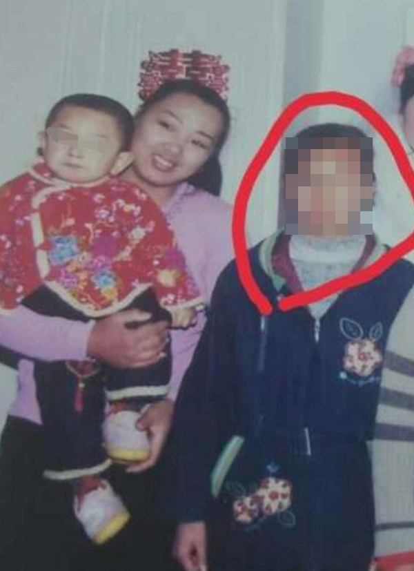 2006年春天,万秀玲(左)抱着小儿子与女儿汤兰兰(右)合影。当日是汤兰兰的叔叔汤继彬的婚礼,两年后,汤兰兰向公安举报汤继彬对其强奸。受访者供图