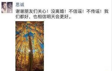 "我要美美的新的开始"、"我要逼我自己一次",看起来是下定决心远离"渣男"了。不过没多久,陈思诚也发布朋友圈辟谣:没离婚!