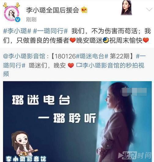 紧接着,李小璐的后援团转发视频:“人总有一天要长大,爱就爱了,不要猜疑,散就散了,不要诋毁...我们不为伤害而苟活,只做善良的传播者",疑似回应前段时间网络上面的骂人风波。