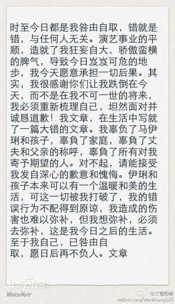 14年3月31日凌晨,文章发长文回应称:“时至今日都是我咎由自取,错就是错,与任何人无关。”