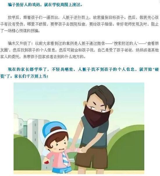 然而,拐卖骗术是曝光一个,又会有新的一个冒出来。明枪易挡,暗箭难防,家长们防得住粗暴人贩子的直接抢人,却防不住高智商人贩子的“精心设局”!现实往往让人觉得防不胜防!
