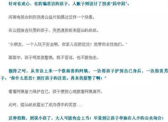 看了上面人贩子坑蒙拐骗的新招,各位家长可要吸取些教训: