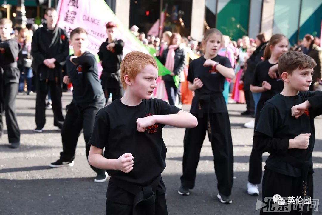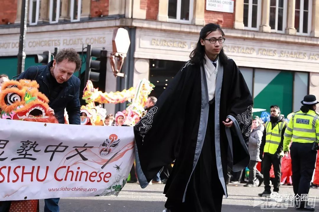 而英国人对中国文化的理解和欣赏范围,也早就超出了舞龙舞狮这些符号化的表象。前文提到的队伍里能看到各种代表性文化元素,从汉服到武术,从扇子舞到