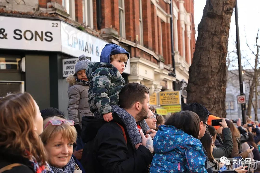 传统舞龙舞狮队和花车上午10点准时从特拉法加广场出发,经过查宁十字路、在剑桥圆环转到莎士比利大道。9点半的时候,道路边就已经堆满了围观群众……真的是“堆”!
