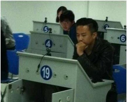 申请车型是C1。考试采用无纸化电脑答题,刘涛带着黑框眼镜,坐在006号考台上,做题表情认真。在考试剩余时间还有25分24秒时,刘涛的剩余题数还有23条。