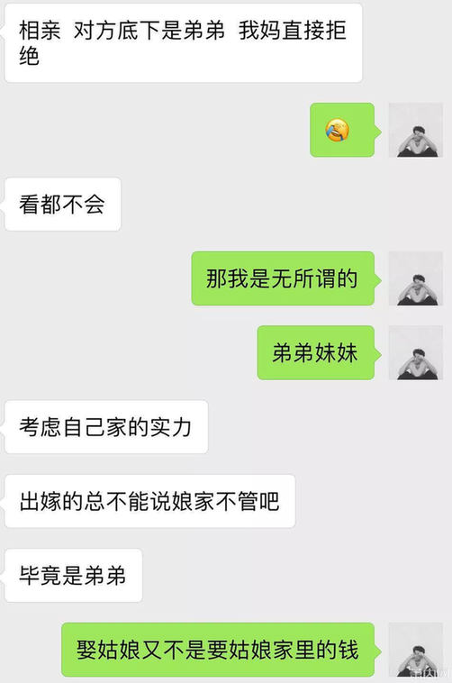 砖家:物质上穷加精神上穷,只有这样的人才会嫌弃有弟弟的妹子。真正有点钱的人家,心里强大的人不会计较这个的……唉,婚姻也成为一种投资。鄙视这种人!