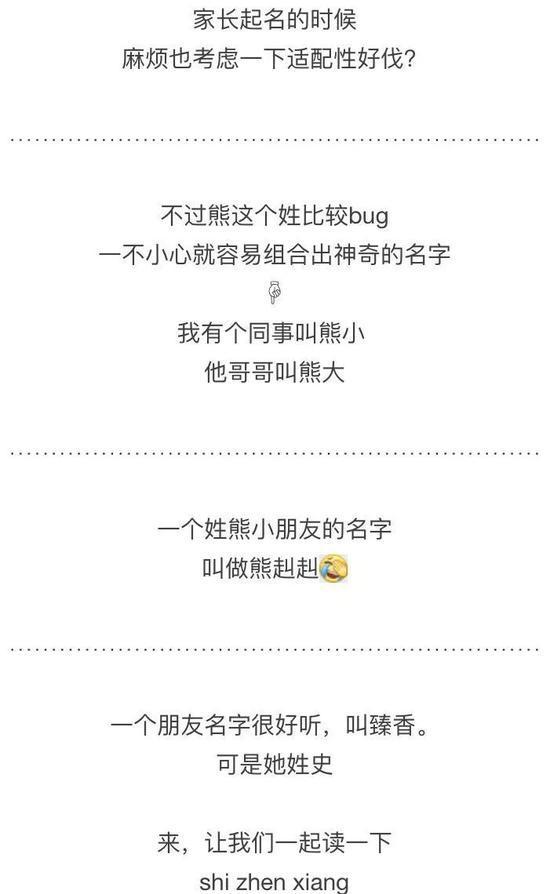 是不是每一个都美到不行,但有些家长起名字的时候,总是能跳过这些成功案例,以十匹马都拉不住的速度,开启了奇怪的走向。一个朋友名字很好听,叫初墨,这没什么,可是她姓熊!