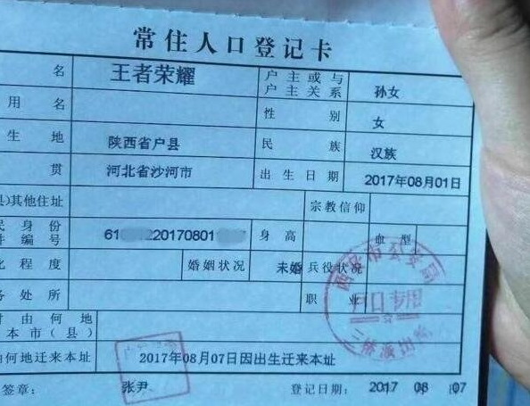 实力坑娃!父亲竟给女儿取名为"王者荣耀"