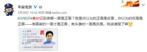 3月30日,@平安北京 的一则关于身份证的科普微博,一下惊呆了网友!身份证到底哪一面才是正面?这也是问题?还用想吗?