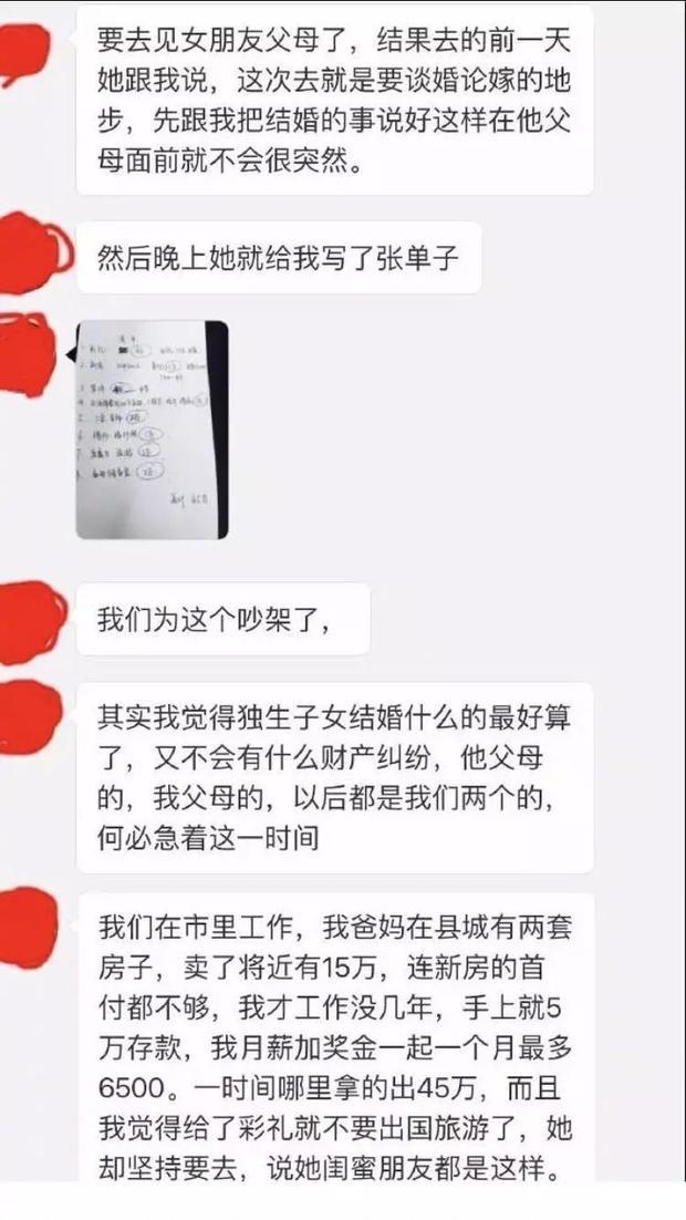 清单上写着,婚礼1万;首饰2万;婚纱、婚纱照1万;蜜月2万。这条相信结过婚的朋友们最有发言权了。单凭清单上的这个价格,应该也在大家可以接受的范围内。