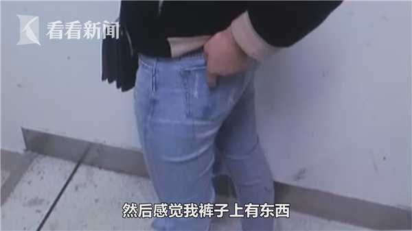 受害人 袁女士:我准备再往旁边走一点的,人多不太好动,一两分钟吧,这个男的自己钻到旁边去了。但是我感觉到裤子上有东西,就是湿了,手一摸就是那种东西。