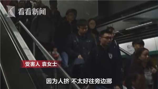 受害人 袁女士:人比较多,人贴人那种,但是这种感觉不一样,我旁边的一个男的挤到了我后面,就是贴得很紧。