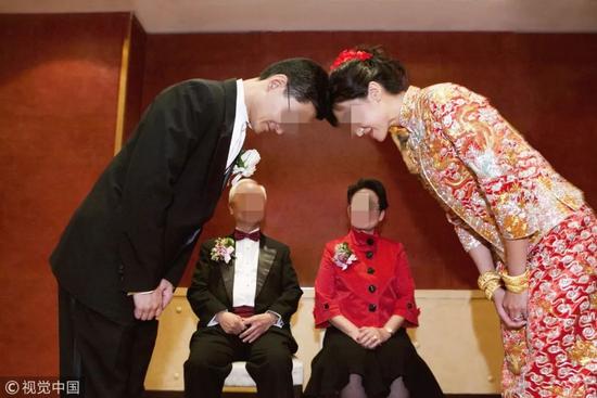 随后,婚礼正式开始。在音乐声中,司仪主持仪式、夫妻双方致辞,一整套常规完成之后,宴席开始了。新郎王某挽着新娘子,挨桌向每一位客人敬酒,每到一处都会引来一阵热情的祝福声。但是,新郎的脸色却始终愁眉不展,其母亲也同样如此。只有新娘子一如既往地兴高采烈,沉浸在婚礼的喜悦之中。