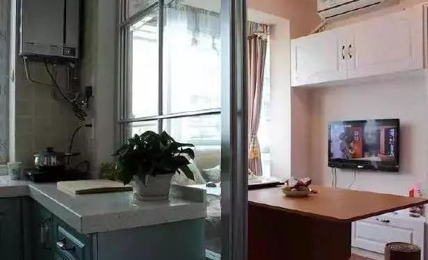 客厅和厨房还有卫生间做了玻璃推拉门隔断