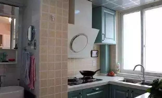 卫生间面积不是很大,很想在卫生间做干湿分离,但是没办法还是没做。厨房就在卫生间洗手池旁边,相当的近,厨房我每天都会很用心的收拾。