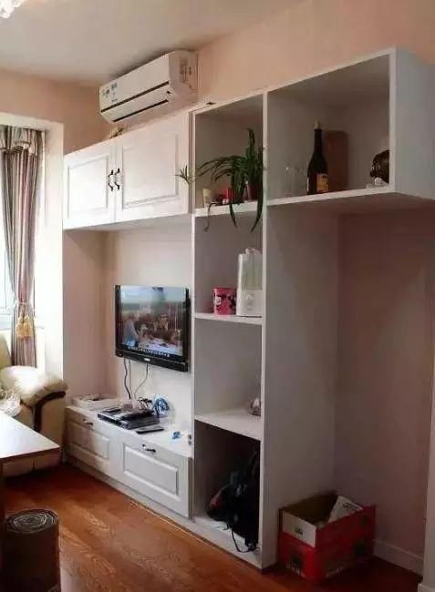 客厅做了整体电视柜,可以增加收纳空间,原本没打算做的,装修师傅很热心,说小户型房子收纳一定要做好,不然以后肯定乱糟糟,所以在他的建议下做了这个柜子。