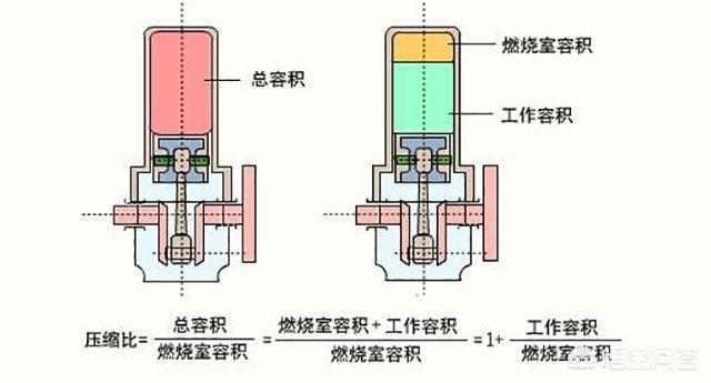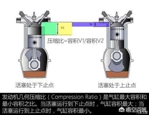 气缸在下止点时的最大体积与气缸在上止点时最小体积之比,即为压缩比。