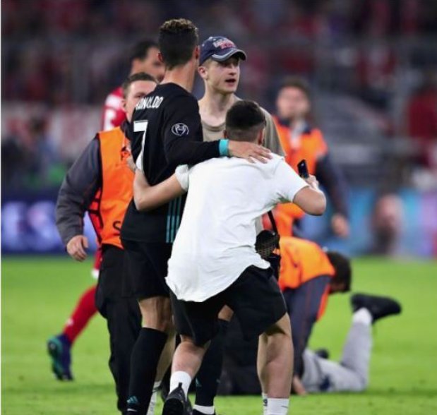 欧冠半决赛首回合的另一场比赛在今天凌晨结束了争夺,最终皇马2-1逆转拜仁取得了晋级先机。当比赛结束时,再次球迷hold不住冲进场内。但是球员们对待球迷的方式各有不一。