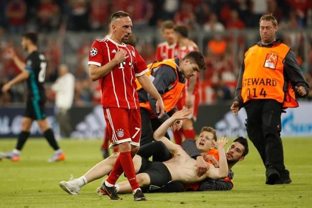 里贝里面对一名缠绕着他的球迷进行了推搡,直到安保人员进场将其拉走。面对这名狂暴的拜仁支持者,里贝里的衣服已经被他扯破了。