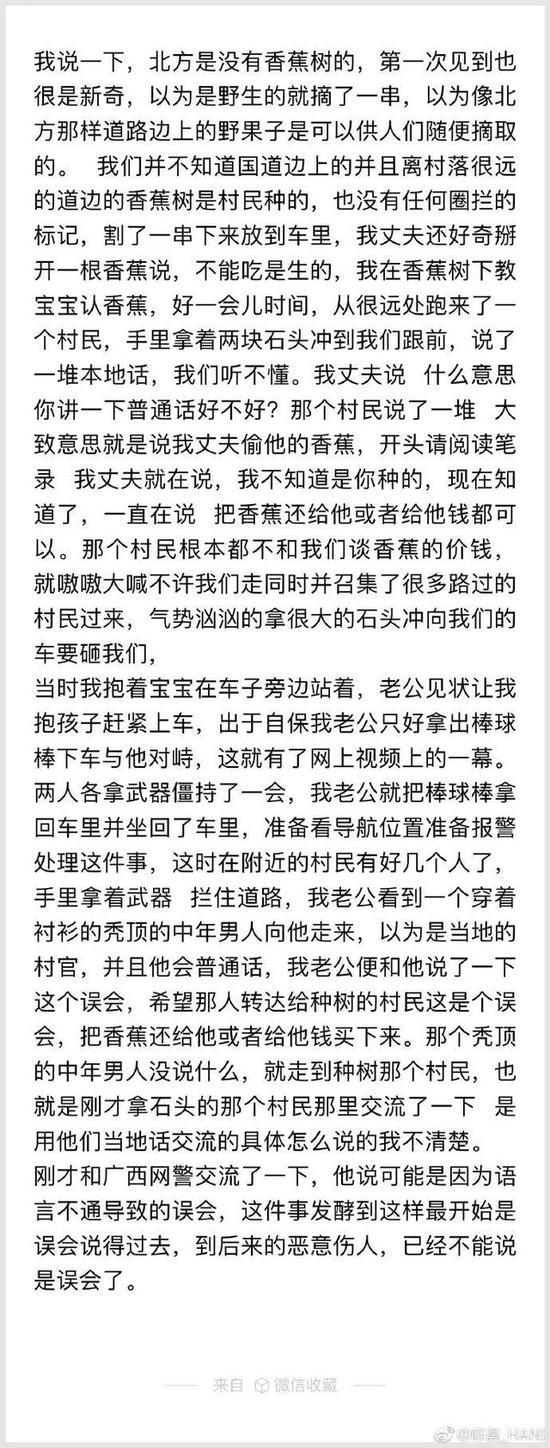 3段视频中,其中一段视频显示,香蕉几乎装满了后备箱。社交平台上有网友因此质疑:“偷这么多家里养大象”。29日,当事人之一通过微博回应称:“凌晨发布的澄清事实真相的微博,下图有人恶意捏造事实发布虚假图片,以蹭热度博人眼球,并有多数拥有众多百万粉丝的博主将图片连同该事件一同转发,造成我的口供与派出所调查笔录不符……”