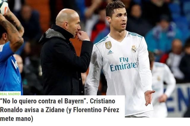 C罗明确告诉皇马主席齐达内,在接下来对阵拜仁的比赛中,他不希望看到本泽马首发出场。在皇马今天对阵莱加内斯的比赛中,首发出场的法国前锋几乎没能给球队带来任何