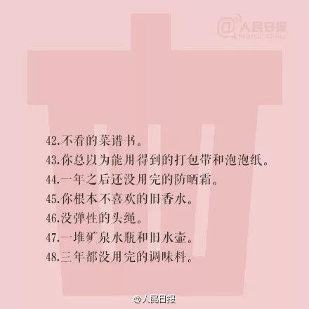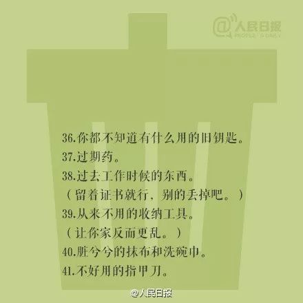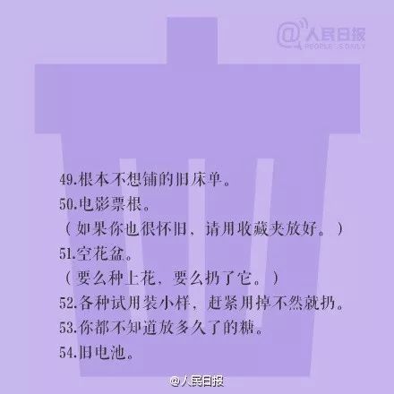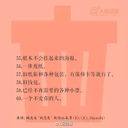 很多人家里都有这种碗, 而且常给孩子用! 赶快扔掉 你得知道: 伙伴们, 你的家里, 是不是还留着不少单只的或没松紧的袜子、 已经枯萎或者快要死掉的绿植、 干洗店送的廉价衣架、 不再需要的旧数据线、 过多囤积的塑料袋、 从宾馆拿回来的洗漱套装…… 戳图↓↓ 生活中扔掉后会过得更好的60样东西, 包括,一个不爱你的人。