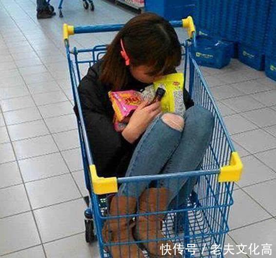 我想知道坐购物车的人是怎么想的?还真以为自己是一个宝宝?