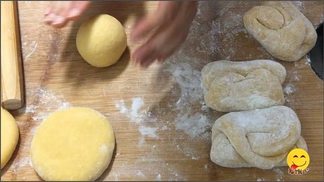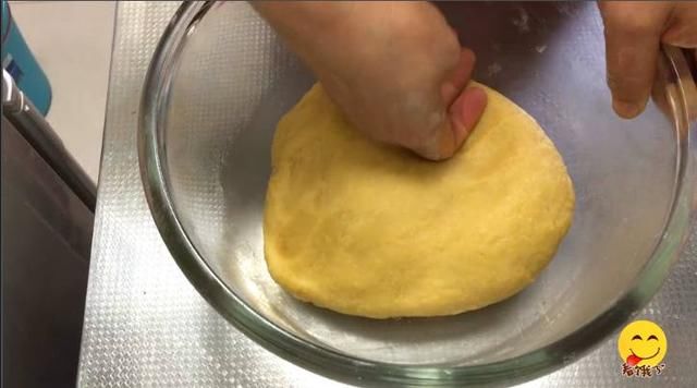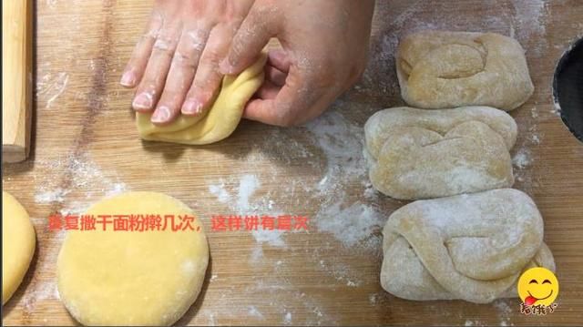 加上干面粉,反复的擀成面皮,这样的作用是让面有层次口感,擀5.6次就可以了
