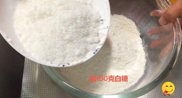 加入100克白糖(不喜欢吃甜的朋友可以不加或者少加,糖的作用是让面粉起发的更快更均匀)