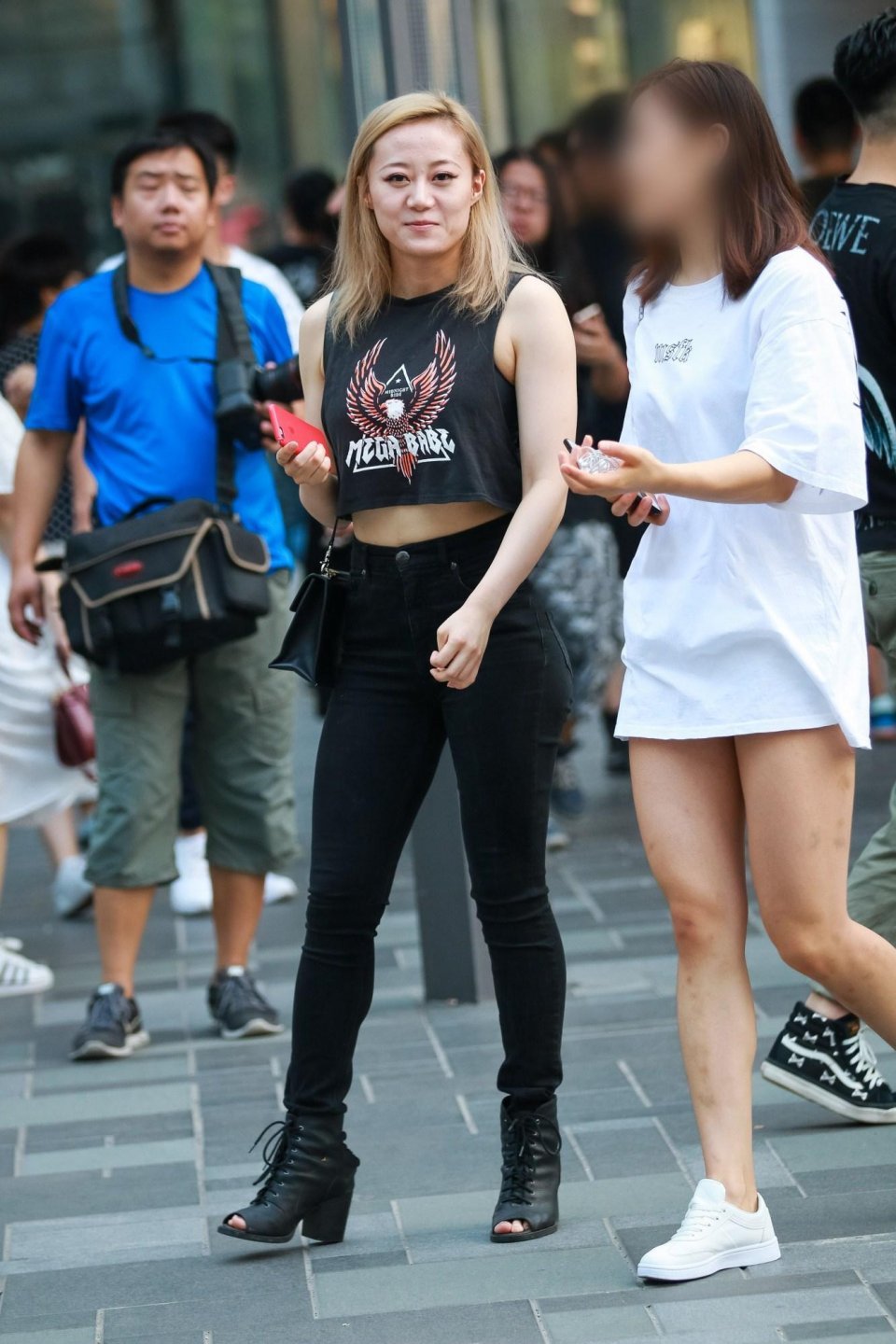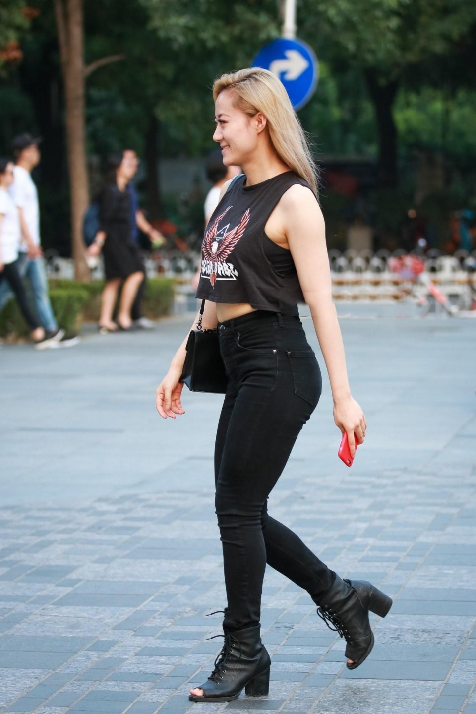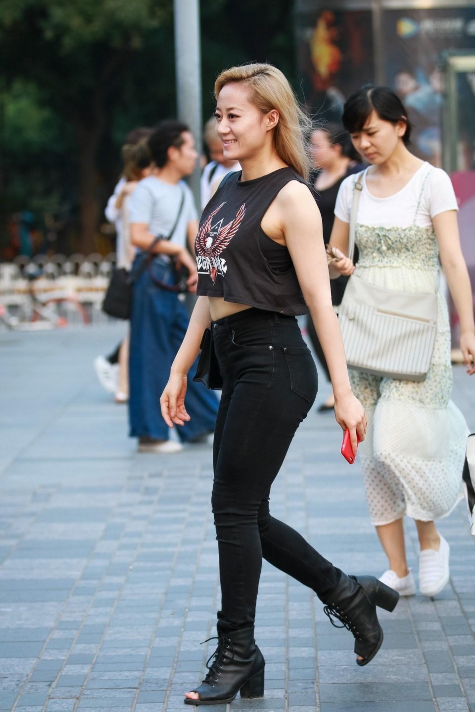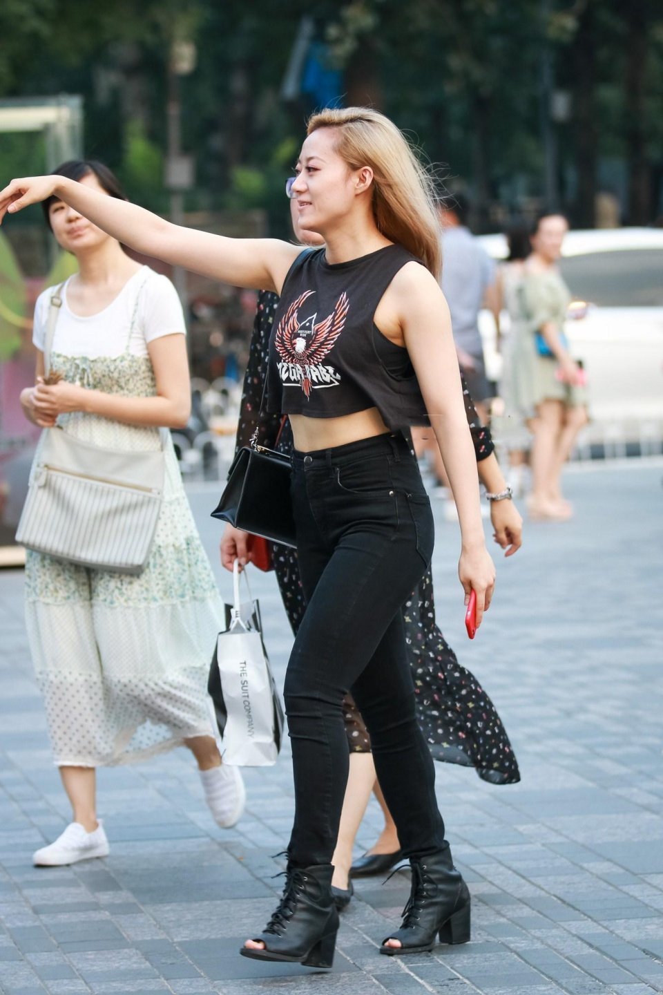 街拍,美丽辣妈性格奔放衣着时尚个性,衬托出凹凸曲线很有味道!
