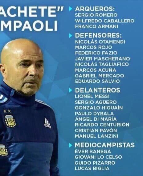 继巴西国家队世界杯大名单公布后,阿根廷当地媒体披露了一份阿根廷国家队世界杯23人大名单。相比于巴西队三条线均衡,阿根廷国家队这三条线可以说是两头重,中间轻。