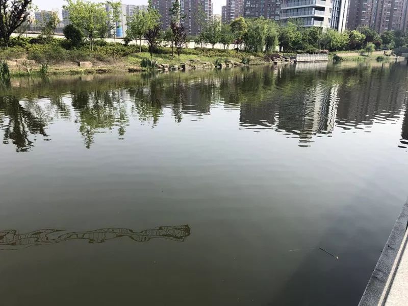 这条河宽20多米,河水浑浊,水位很高,接近岸堤。用手机软件测量,这个地点距离小区大门700余米。